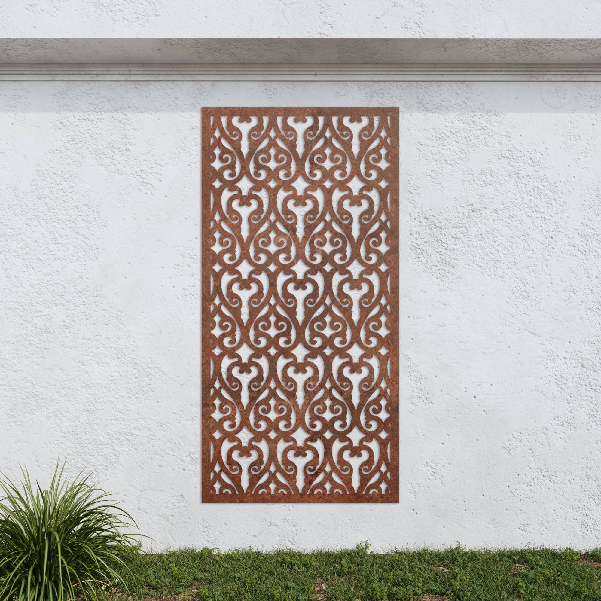 If you love a Baroque style design but like a little more uniformity, the No96 Corten screen is for you. With the same curvaceous shapes as our more ornate models, this one features straighter pattern lines that will be more pleasing to the ordered mind and just-so garden.